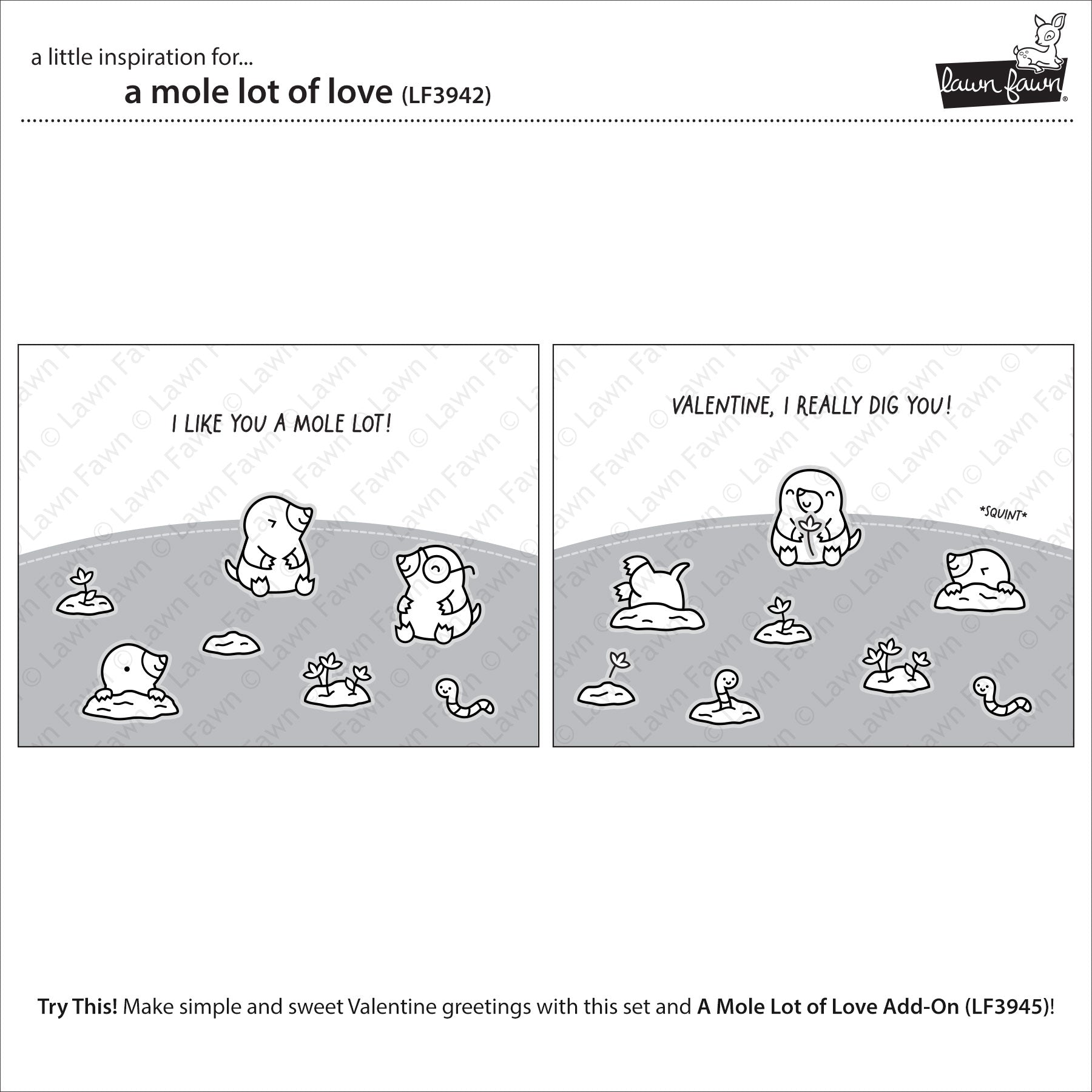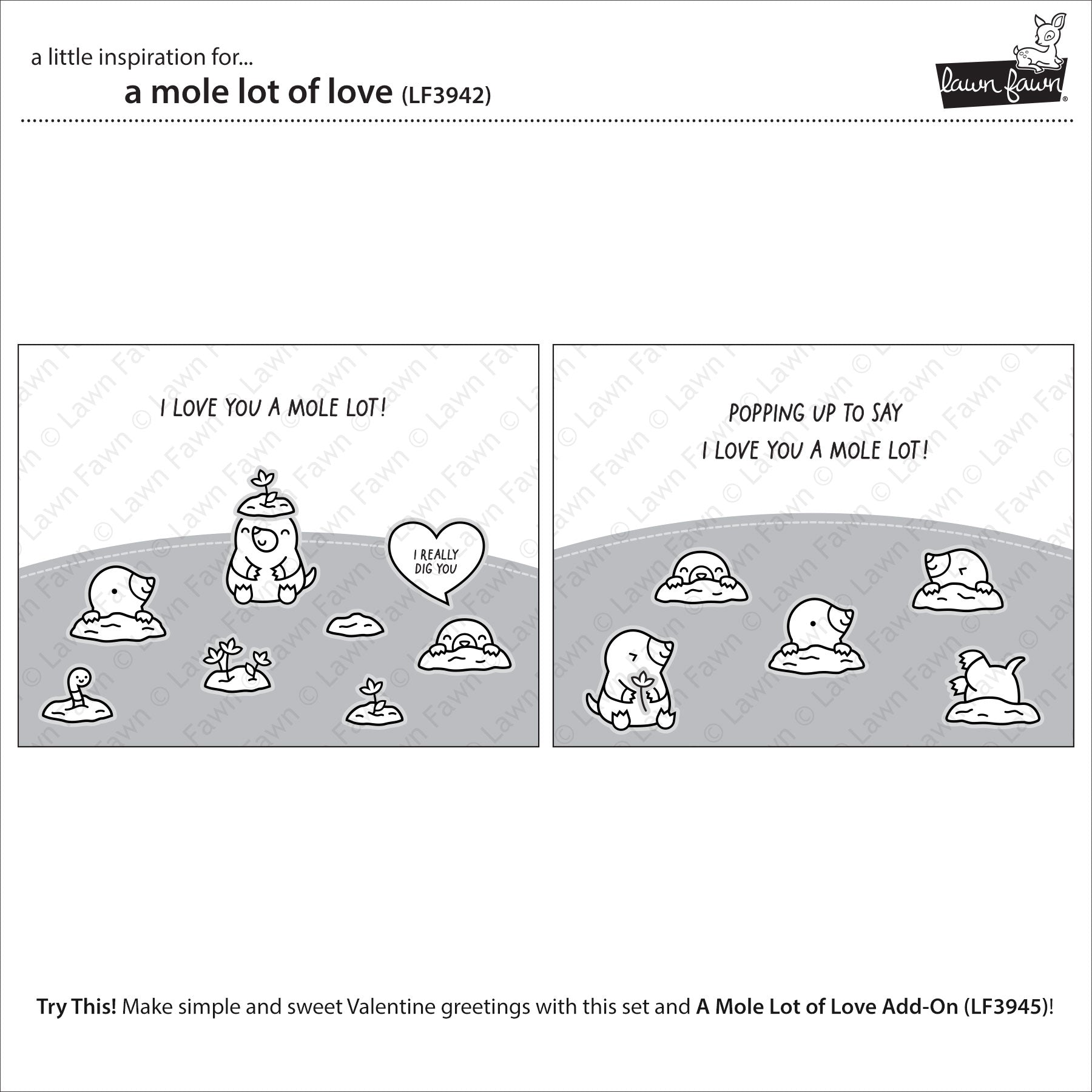 Lawn Fawn A mole lot of love Clear Stamp Set 4x6 Maulwurf & Herzen