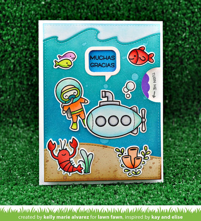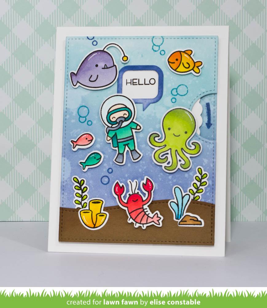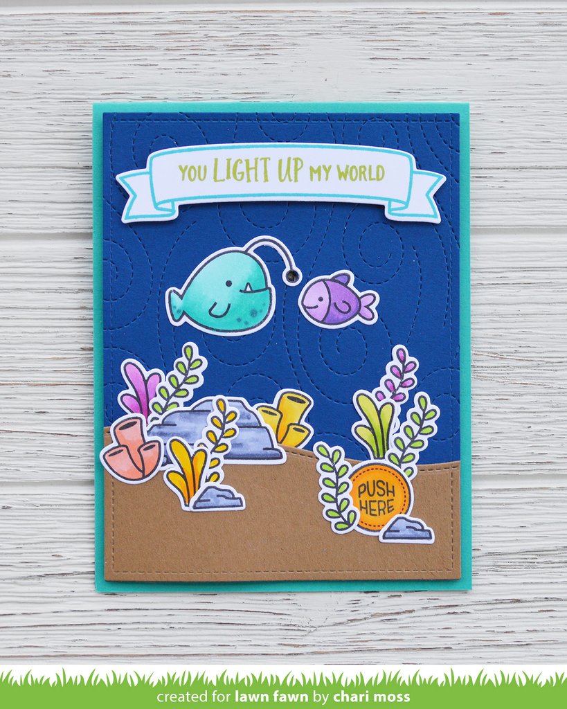 Coordinating set ideas: Pair this set with Porthole Frames and Lift the Flap Circles for an underwater-themed card with a cute surprise inside a porthole. Or use Stitched Wave Borders to create an ocean background for a card. For a cool light-up card, use Chibitronics Chibi Lights or Glow-in-the-Dark Embossing Powder to light up the angler fish’s lure. You can also make a fun three-dimensional project with Shadow Box Card and Shadow Box Card Ocean Add-On!