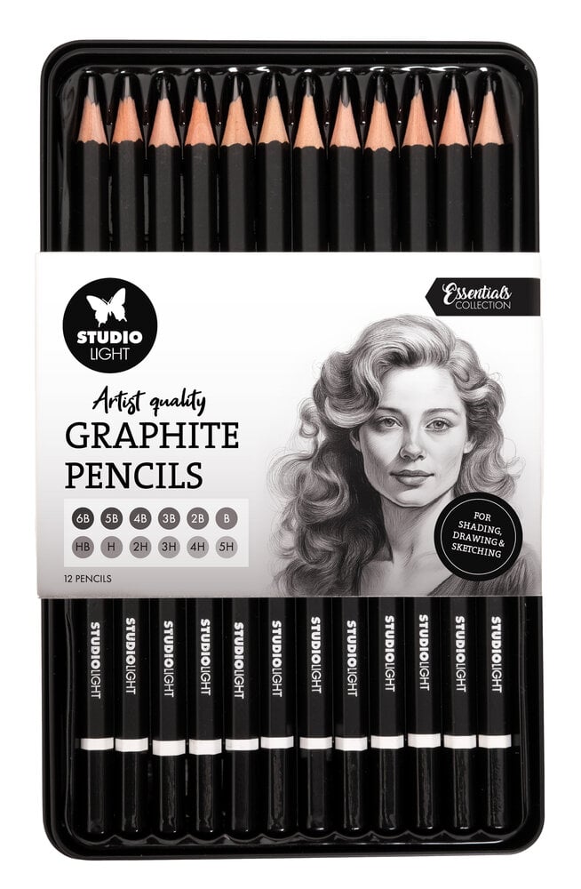 Dieses professionelle Bleistiftset aus der Essentials-Serie von Studio Light bietet 12 hochwertige Graphitstifte in fein abgestuften Härtegraden von 6B bis 5H. Perfekt für Zeichnungen mit weichen Schattierungen, präzisen Linien oder detailreichen Skizzen.