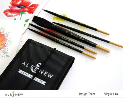 This set includes four round brushes in sizes #1, #2, #3, and #4, and a size #18 flat brush. The brushes come in a specially designed black cloth container to encase the brushes safely and elegantly in your craft room.