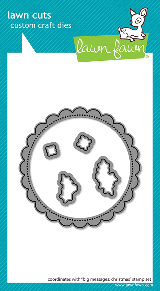 Lawn Fawn big messages: christmas lawn cuts ist ein Stanzformensatz mit 5 Teilen, der grosse, festliche Schriftzüge und feine Akzente aus Papier zaubert.