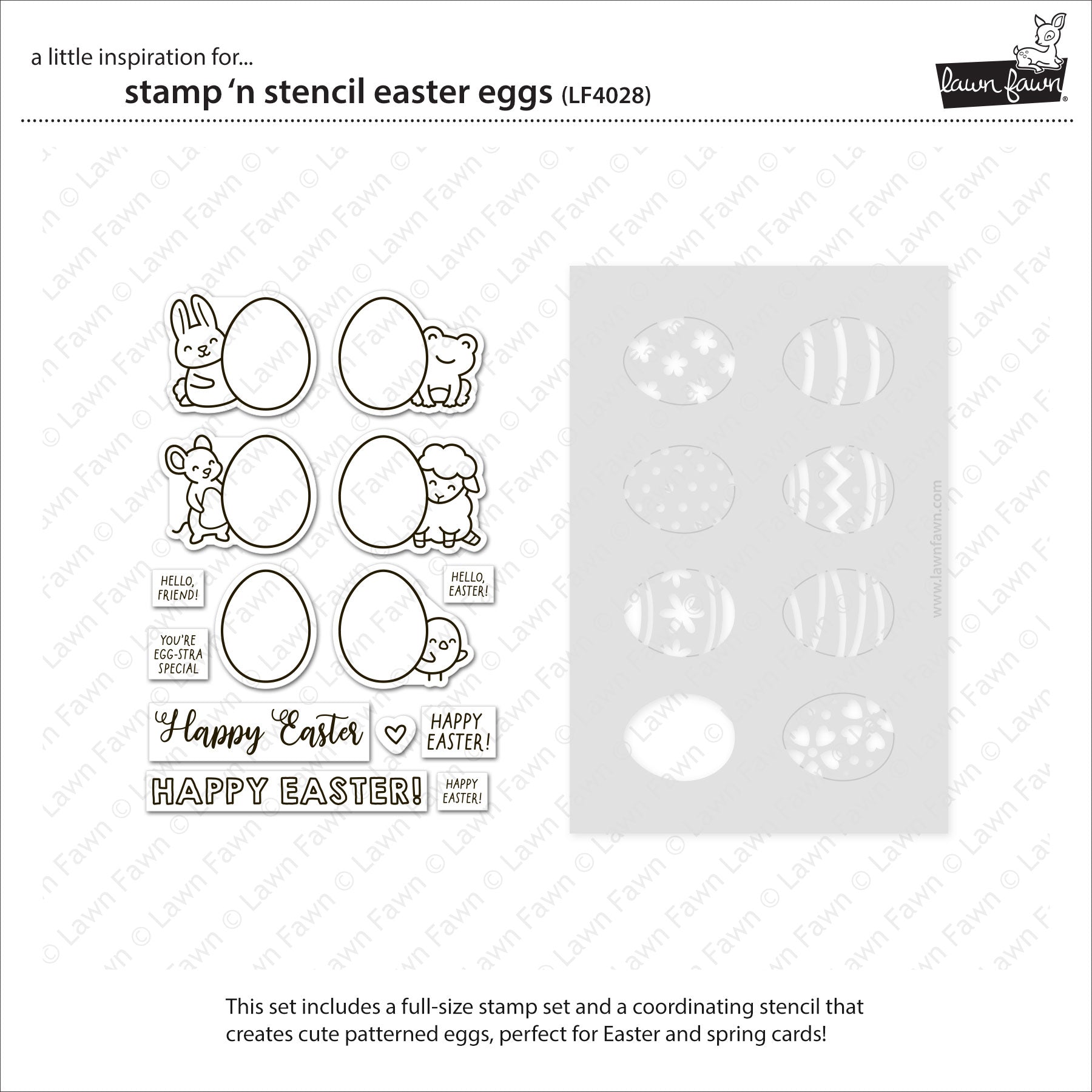 Lawn Fawn Stamp 'n Stencil Easter Eggs 4x6 Clear Stamp Set