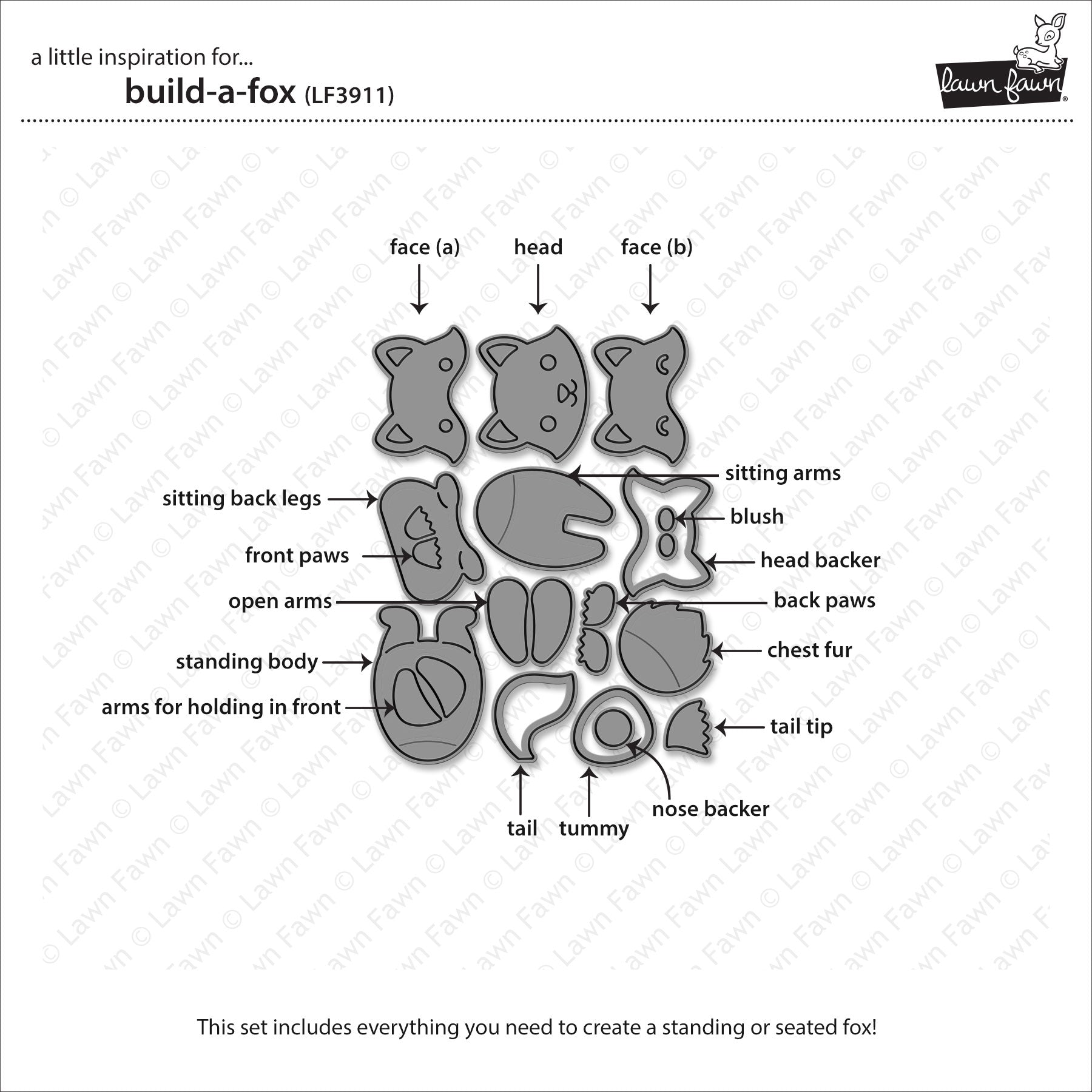 Lawn Fawn build-a-fox ist ein vielseitiges Stanzenset, mit dem du einen sitzenden oder stehenden Fuchs in deinem eigenen Stil gestalten kannst.