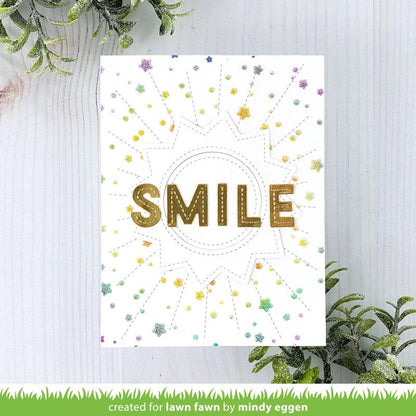 Coordinating Set Items: Pair it with Stitched Sun Frame for a set of cute eyes, a smile, and plump cheeks, and sentiments from All the Clouds for a happy and "bright" greeting! Use Sunburst Backdrop to add extra sunrays to the project. Add a backdrop to your card with Starry Sky Stencil. To make a shaker card, pair this set with Stitched Sun Frame