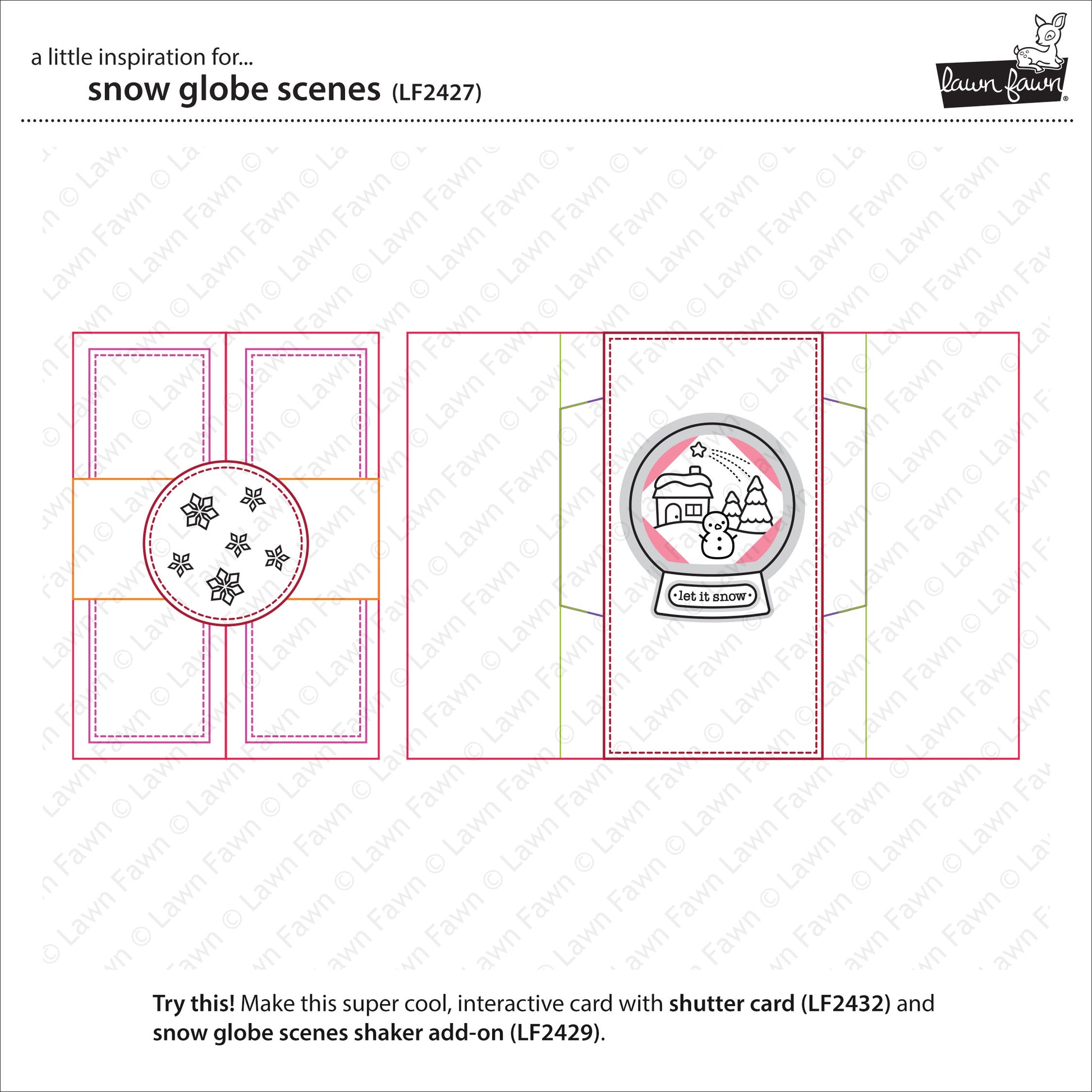 These scenes are a great fit for Magic Iris, Magic Iris Snow Globe Add-On, Shutter Card, Shutter Card Snow Globe Add-On, Scalloped Circle Gift Tag, and Snow Globe Gift Tag!