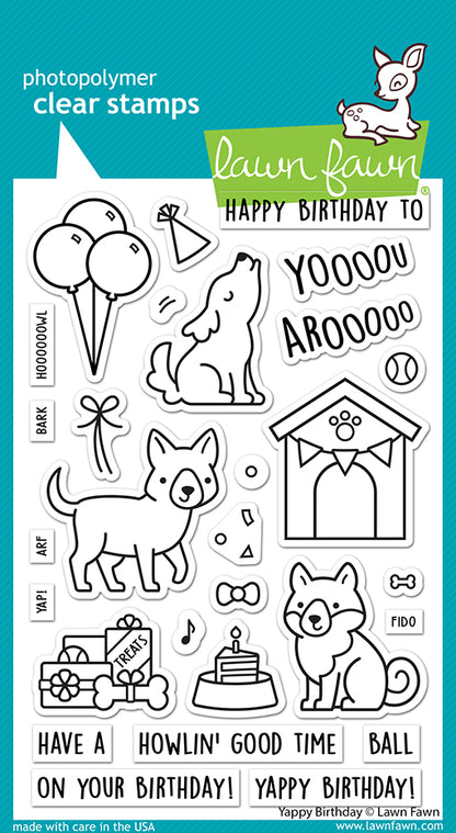 Lawn Fawn Yappy birthday Clear Stamp 4x6